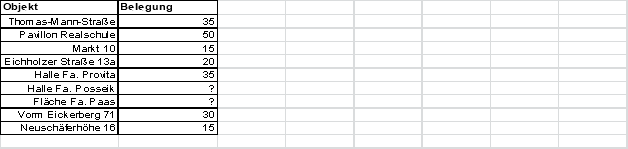 IV Folgende Objekte wurden zwischenzeitlich angemietet: