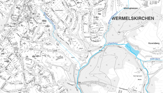 Das betrachtete Baufeld liegt im Stadtgebiet von Wermelskirchen. Der Planungsbereich befindet sich außerhalb der Bebauung südlich des Sportplatzes Dhünner Straße in bewaldetem Gebiet. Der Eifgenbach ist rd. 15 m von dem Becken entfernt.