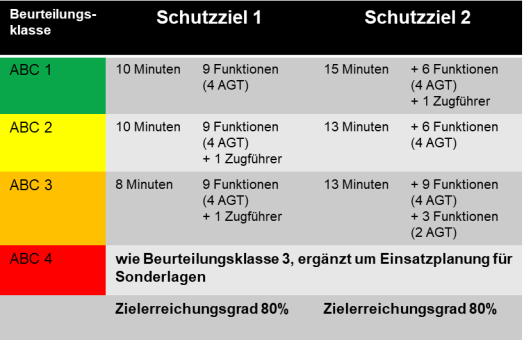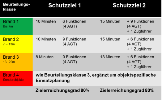 Schutzzieldefinition: Die Schutzzieldefinition orientiert sich an den Empfehlungen des sogenannten „VdF-Papiers“ des Verbandes der Feuerwehren und wird wie folgt konkretisiert: