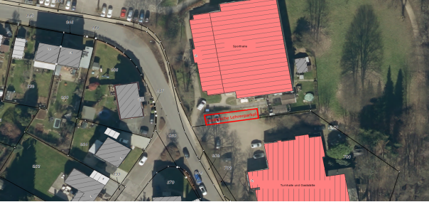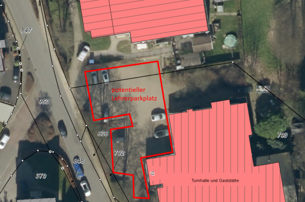 Sollte es wider Erwarten nicht zu einer Einigung mit dem Miteigentümer kommen, wird vorgeschlagen, einen Teil der Lehrerparkplätze auf dem städtischen Teil des Parkplatzes an der Sporthalle auszuweisen.